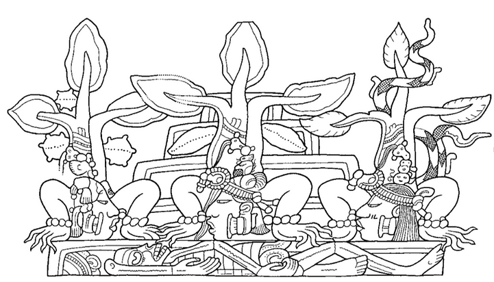 コーンの神様が埋められているマヤのピラミッドに3本の木が生えていて、